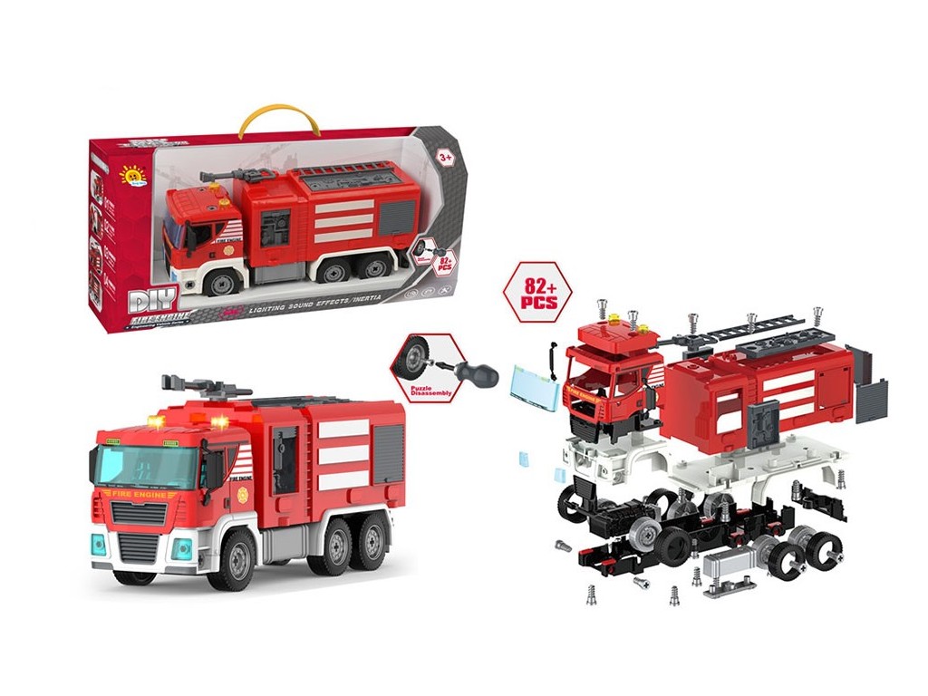 Auto hasičské ke šroubování, se světlem a zvukem, 26,8 cm, na baterie Největší zábavou pro dítě je, když může něco vytvořit samo. Pak z toho má opravdovou radost. Auto na šroubování je ideální hračkou. Dítě si auto složí a bude mít skvělý pocit z dobře odvedené práce. Hračka rozvíjí motoriku dítěte, logické myšlení a trpělivost. Auto má zvukové a světelné efekty. Rozměr produktu: 26,8 x 10 x 13,4 cm Napájení: baterie AG13, jsou součástí balení. Materiál: plast Doporučený věk: 3 +