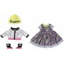 Díky vrstveným šatům a žluté čepici vypadá panenka BABY born v rušných městských ulicích velmi elegantně. Jako ochranu proti větru nosí bundu s lesklým stříbrným vzorem. Parádní boty hrají barvami a dokreslují celkový vzhled.