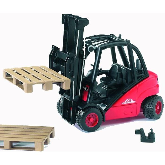Vysokozdvižný vozík LINDE H30D je věrnou kopií skutečného vozidla. Jedná se o menší model s dvěmi paletami, má funkční řízení, funkční zdvih a sklon vidlice, nechybí ani tažné zařízení pro možnost připojit vlek. Obsahuje 2 kusy palet.