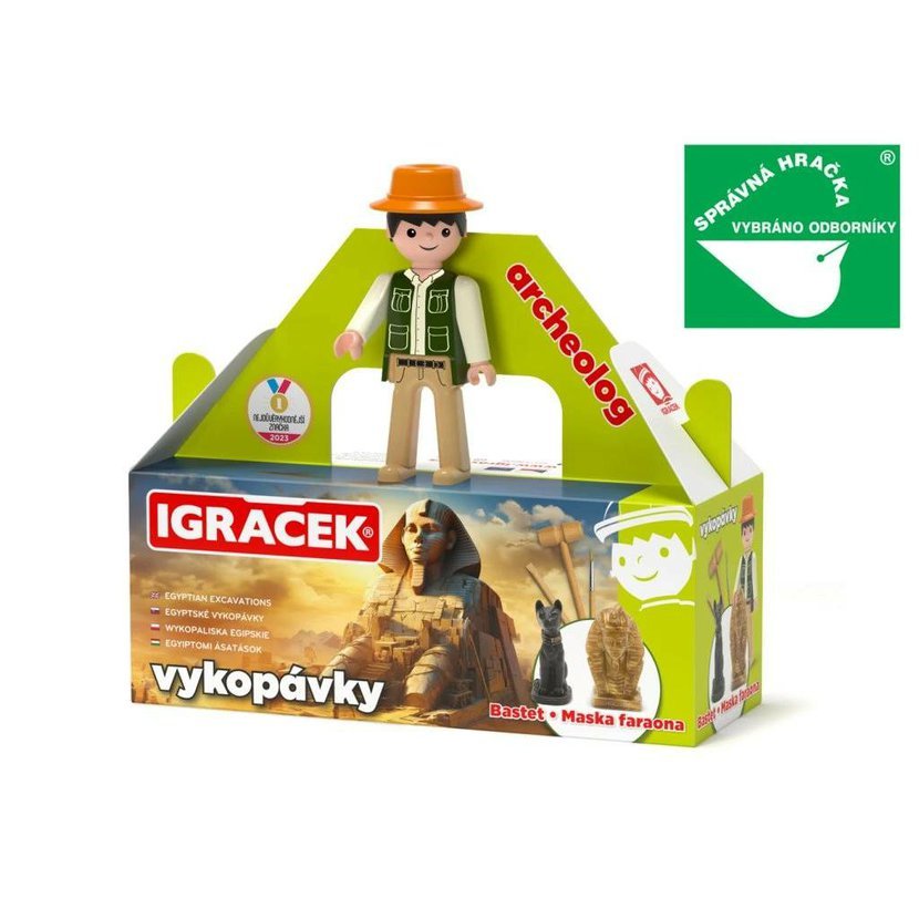 Děti rády objevují. Proto jsme pro ně připravili dobrodružnou řadu Igráčků s vykopávkami. V tomto setu budou děti s Igráčkem Archeologem odhalovat egyptské artefakty. Jejich úkolem bude vykopat ze dvou kamenů sošku bohyně Bastet a masku faraona. Při zábavné činnosti si procvičí jemnou motoriku i trpělivost.