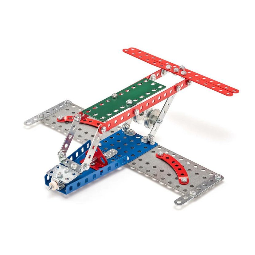 Klasická jednovrstvá stavebnice Merkur 14 – letadlo. Stavebnice obsahuje součástky potřebné pro stavbu modelů letadel. Součástí stavebnice je návodová knížka s návodem na stavbu 10 různých modelů. Tato jedinečná sada je ideálním nástrojem pro rozvoj technických dovedností a představivosti dětí. Stavebnice obsahuje kvalitní kovové díly, které se snadno spojují šroubky, což podporuje rozvoj jemné motoriky, logického myšlení a soustředění. Počet dílků: 130. Úroveň Merkur obtížnosti: 2. Barvy, velikost a vzhled výrobku se mohou lišit oproti uvedeným fotografiím. Baleno v krabičce. Rozměry balení: 18 x 26 x 5 cm. Nevhodné pro děti mladší 3 let. Věk: 5+