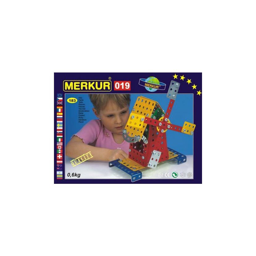 Klasická jednovrstvá stavebnice Merkur 19 – Mlýn. Stavebnice obsahuje součástky potřebné pro stavbu různých modelů. Součástí stavebnice je návodová knížka. Tato jedinečná sada je ideálním nástrojem pro rozvoj technických dovedností a představivosti dětí. Stavebnice obsahuje kvalitní kovové díly, které se snadno spojují šroubky, což podporuje rozvoj jemné motoriky, logického myšlení a soustředění. Počet dílků: 181. Úroveň Merkur obtížnosti: 3. Barvy, velikost a vzhled výrobku se mohou lišit oproti uvedeným fotografiím. Baleno v krabičce. Rozměry balení: 18 x 26 x 5 cm. Nevhodné pro děti mladší 3 let. Věk: 5+