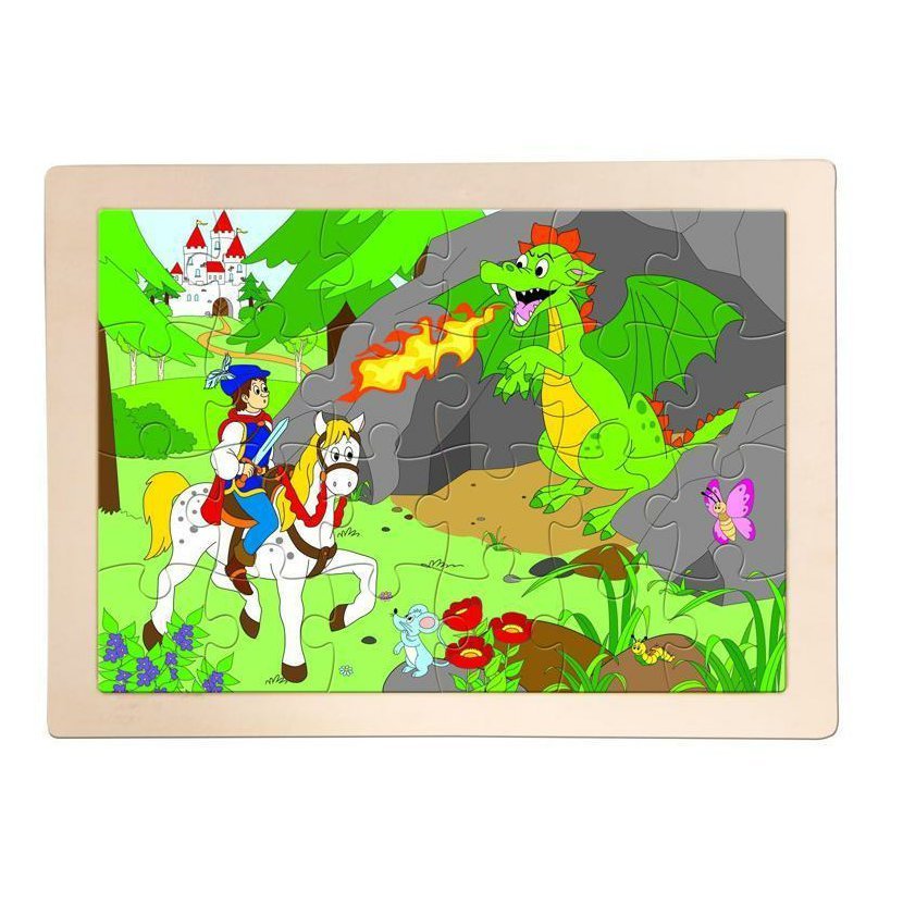 Klasické zámkové puzzle umístěné ve dřevěném rámu. Puzzle je navrženo tak, aby se snadno skládalo i malým dětem. Nenaleznete zde např.stejné dílky s plochou trávy či nebe, které jsou pro malé děti špatně identifikovatelné. Na každém dílku je zobrazena část celku nebo alespoň lísteček či šneček tak, aby se dítě snadno orientovalo.