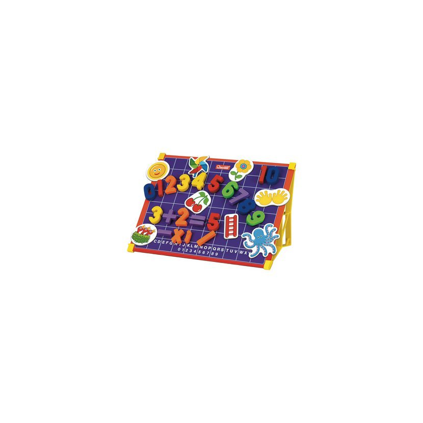 Magnetická tabulka použitelná 2 způsoby, tj. ke skládání jednoduchých početních úloh nebo k psaní a kreslení smazatelným popisovačem na druhé straně. Souprava obsahuje 48 magnetických číslic a znamének a 10 magnetických obrázků, které společně s psacími potřebami po ukončení hry uložíte do 2 podlouhlých pouzder. Souprava je určena dětem od 4 let.
