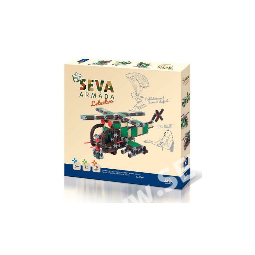 Stavebnice Seva Armáda - Letectvoobsahuje 511 dílků, ze kterých si můžete sestavit vojenskou techniku např.: vrtulník či tank...